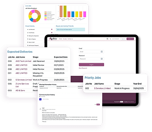 Our client portal gives you a clear view of all your jobs at a glance. No chasing emails—just log in and see the live status anytime.